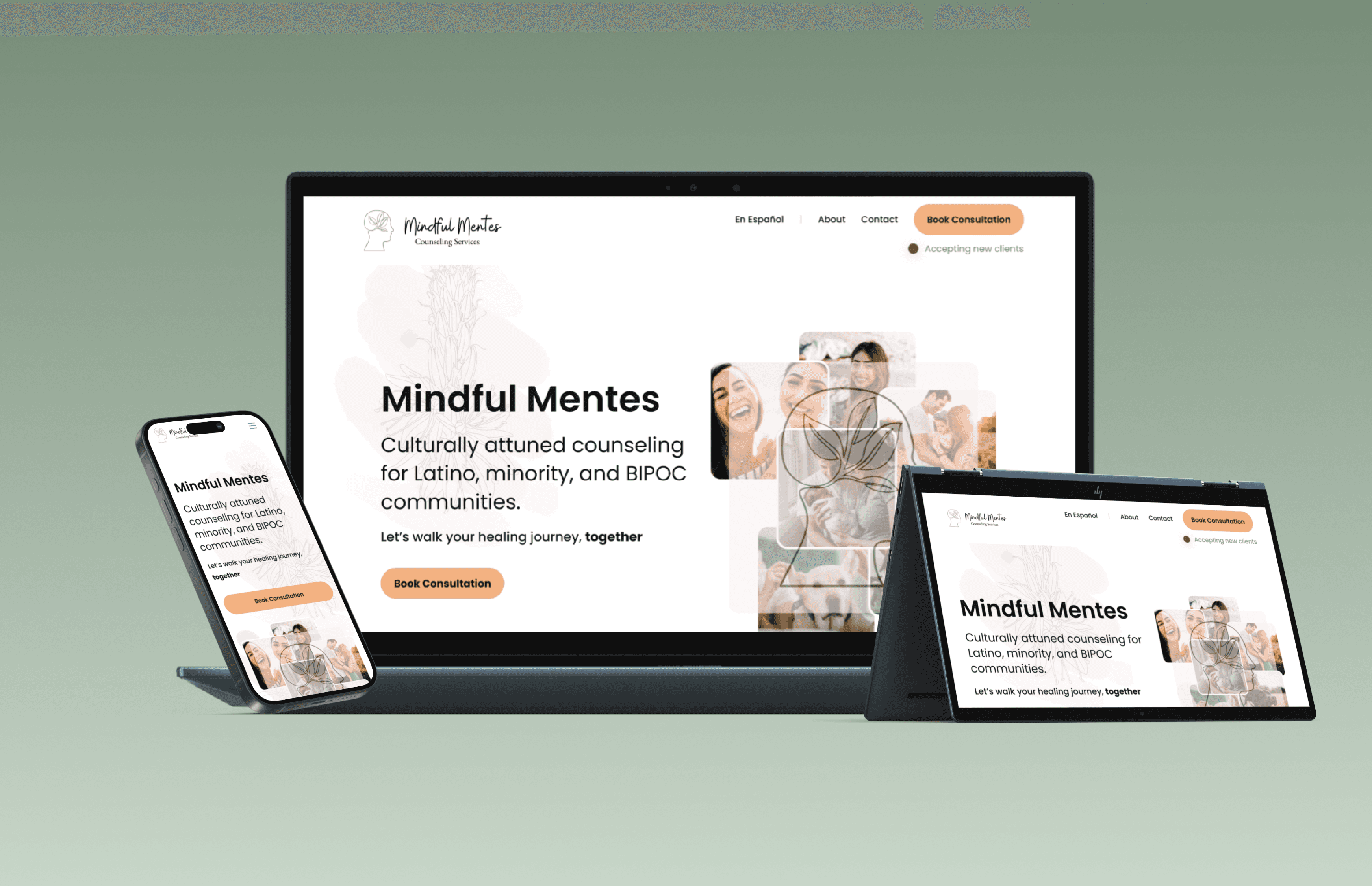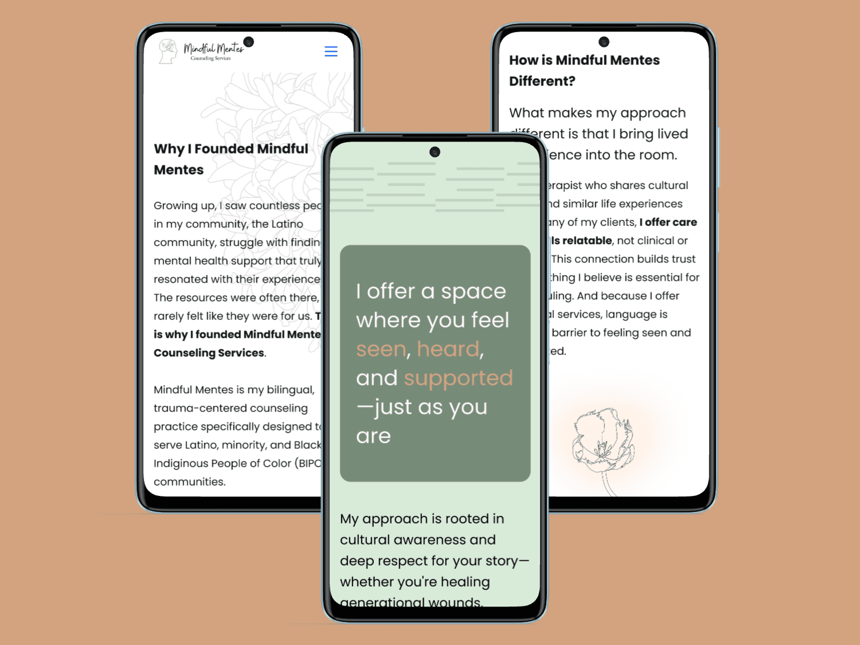 Mindful Mentes was looking for a redesign. Not only a new look and feel, but also easily directing and informing their users about their first appointment.